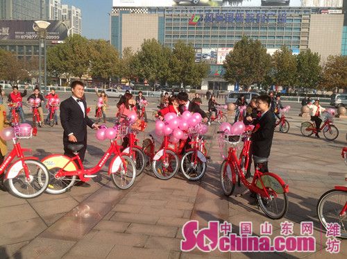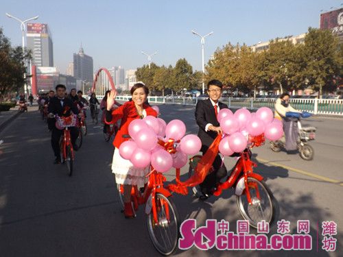 濰坊公共自行車(chē)試運(yùn)行以來(lái),得到了市民的認(rèn)可和喜愛(ài)。記者在濰坊市公共自行車(chē)管理處了解到,用公共自行車(chē)來(lái)代替“婚車(chē)”在濰坊并不是第一例了,這樣的婚禮不僅低碳環(huán)保,又浪漫時(shí)尚。婚禮中的公共自行車(chē)是濰坊公共自行車(chē)管理處在了解了他們的情況之后免費(fèi)提供的,新郎表示十分的感謝,并呼吁更多的市民加入到低碳出行的隊(duì)伍中來(lái)。