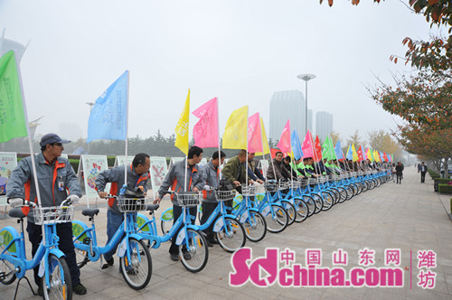 濰坊公共自行車項(xiàng)目自去年11月1日正式運(yùn)營以來,至今已一年時(shí)間。為讓更多人選擇公共自行車出行方式,今日上午,濰坊市市政局舉行“慶祝濰坊公共自行車運(yùn)行一周年騎行活動”,并為全市騎行數(shù)量最多和騎行時(shí)間最長,以及第一名辦卡的市民頒獎,其中騎行時(shí)間最長的市民共計(jì)騎行58451分鐘,即平均每天騎行兩個半小時(shí)以上。