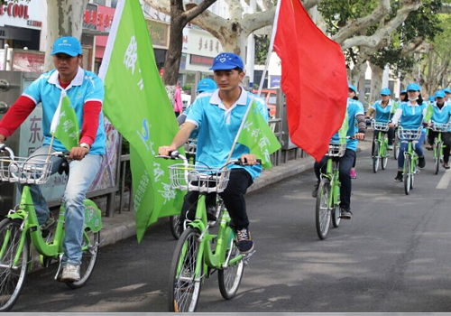 淮北分公司組織舉辦了千人騎行活動(dòng)。綠色的公共自行車,配上寫有環(huán)保標(biāo)語(yǔ)的小旗幟,再加上綠色的領(lǐng)隊(duì)旗,現(xiàn)場(chǎng)的場(chǎng)景頗為壯觀。