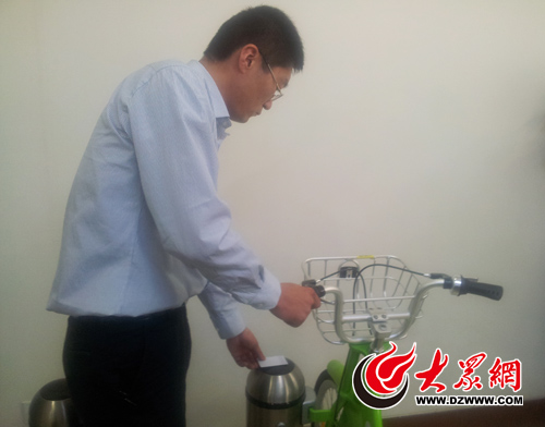廠家工作人員演示公用自行車如何使用