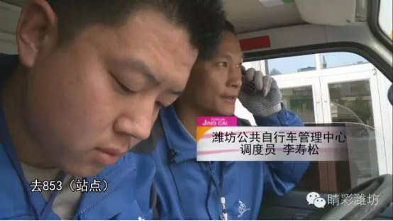 濰坊公共自行車管理中心共有30輛調(diào)度車,早上6點40分,調(diào)度車同時出發(fā),去往市區(qū)不同站點,李壽松的搭檔是比自己小20歲的李臣浩。