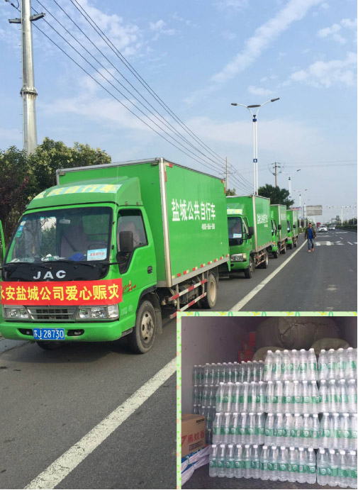 在天災(zāi)面前,我們顯得那么渺小和無力,在抗災(zāi)救災(zāi)時(shí),我們愛心力量大,我們一直與阜寧、射陽同在。鹽城公共自行車中心發(fā)起愛心捐贈(zèng),用善款購買了礦泉水、方便面、油布、被褥、床席、蚊香等救災(zāi)物資,送往災(zāi)區(qū),給受災(zāi)群眾送去溫暖,用實(shí)際行動(dòng)援助災(zāi)區(qū)的兄弟姐妹。
