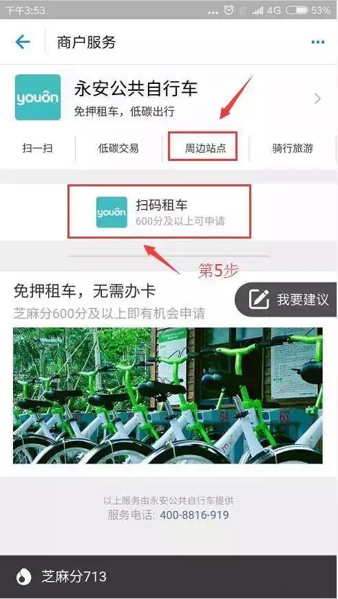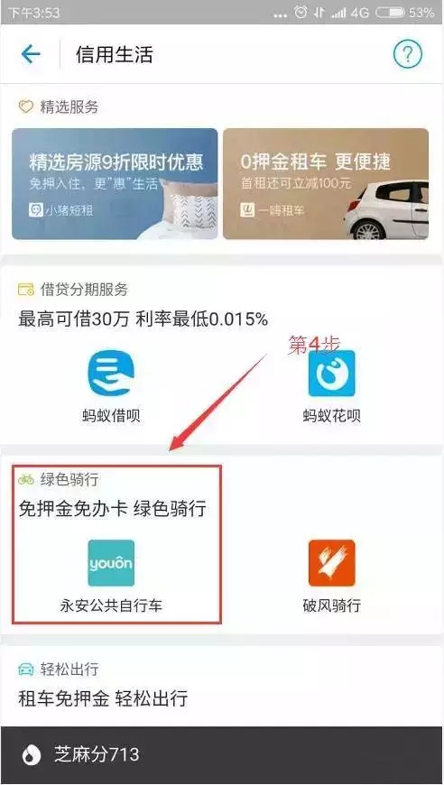 4、永安公共自行車(chē),就是我們現(xiàn)在在用的公共自行車(chē),相比于傳統(tǒng)的刷卡租車(chē),用支付寶掃碼,可以看到多了很多功能。