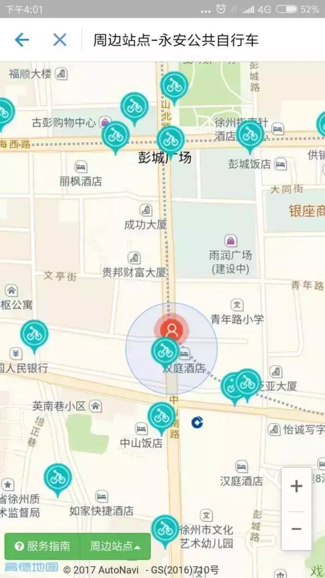 點(diǎn)進(jìn)去以后,手機(jī)自動(dòng)定位了路人君當(dāng)時(shí)所在的位置,并且將周?chē)沧孕熊?chē)的站點(diǎn)顯示了出來(lái)。