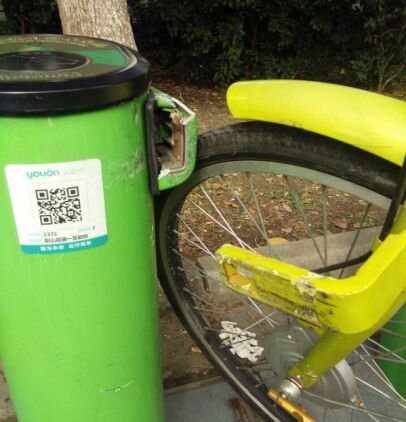 然而市民在使用公共自行車這個公共資源的同時,總會發(fā)生對公共自行車站點設(shè)備進(jìn)行破壞、隨意張貼小廣告、將車輛占為己有上私鎖等不良現(xiàn)象屢見不鮮,令人痛惜、痛恨。