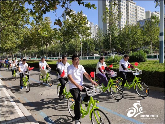 為倡導(dǎo)綠色文明出行,傳播“低碳生活、綠色出行、文明出行”的生活理念,提升市民參與環(huán)保行動(dòng)的積極性,進(jìn)一步促進(jìn)城市生態(tài)和諧發(fā)展,9月22日由濰坊市城市管理局、濰坊市市政公用事業(yè)服務(wù)中心主辦,常州永安公共自行車運(yùn)營(yíng)有限公司濰坊分公司承辦的2019年“世界無車日”慶祝新中國(guó)成立70周年騎行活動(dòng)暨第三代公共自行車投放儀式在人民廣場(chǎng)成功舉辦,共計(jì)150余位熱心市民參加了本次主題騎行活動(dòng),并集體合唱《歌唱祖國(guó)》和《義勇軍進(jìn)行曲》,慶祝新中國(guó)成立70周年。