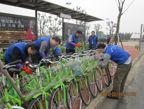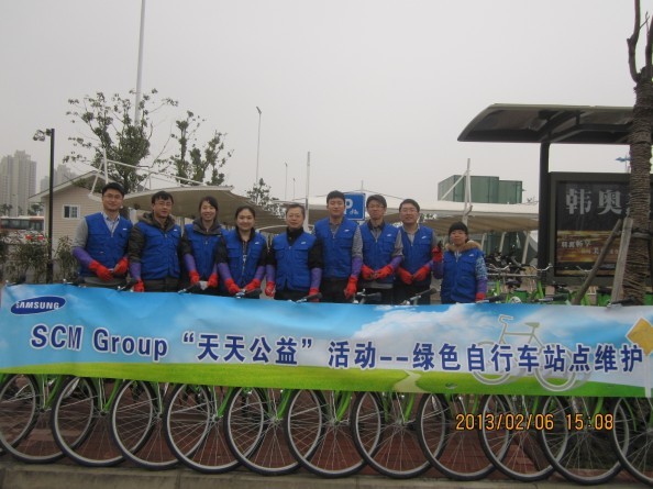 在活動(dòng)現(xiàn)場(chǎng)有些自行車(chē)需要調(diào)整零件的,懂自行車(chē)維護(hù)的同志就自告奮勇的站出來(lái)?yè)?dān)當(dāng)這個(gè)任務(wù),有些自行車(chē)需要清潔工作的,就拿起抹布認(rèn)真仔細(xì)地擦試,不一會(huì)兒工夫一個(gè)又一個(gè)站點(diǎn)在他們熟練的動(dòng)作中形成一道道美麗的風(fēng)景線。三星顯示器有限公司率先從自身做起,將環(huán)保理念深入員工帶動(dòng)市民,以實(shí)際行動(dòng)支持環(huán)保事業(yè)。