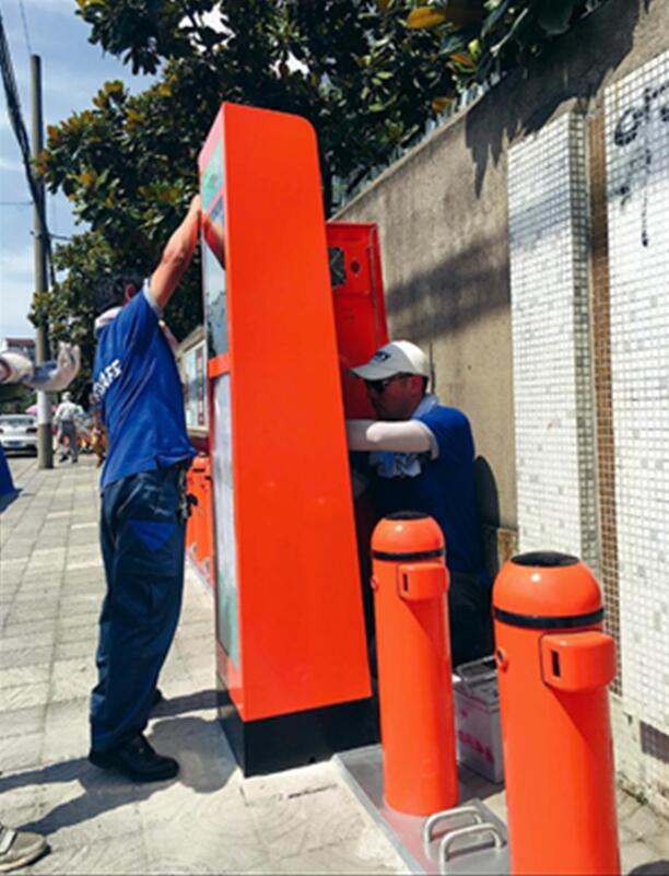 車輛安全卸下后,工人們來到花溪苑一區(qū)門口站點(diǎn)安裝調(diào)試新的機(jī)柜、鎖柱,并將新車一輛輛上軌,擺放整齊。為了不影響附近居民的使用,工作人員搶時(shí)間、戰(zhàn)高溫,基本做到了當(dāng)天拆當(dāng)天安裝,在24小時(shí)內(nèi)恢復(fù)正常使用。