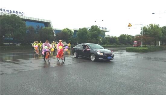 10月5日,一對新人選擇了一個新意十足的騎行婚禮,在我們泗陽可算是第一遭。踏上婚禮殿堂的一刻總是令人難忘,而作為主角的新人總是期望每一個細(xì)節(jié)都能與眾不同。新郎接到新娘后,兩位新人選擇共同騎著我們的小橙前往婚禮現(xiàn)場,就像平日里兩人一同騎行小橙出門一樣,只不過這一次他們即將共同騎向幸福的婚禮殿堂。新郎表示,婚禮一生只有一次,想給她一個與眾不同又凸顯個性的婚禮,于是想起了每天都騎行的小橙,更是要感謝小橙帶來的一段姻緣,與她結(jié)識并相親相愛。